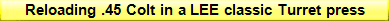 To anybody starting out in reloading, I would heartily recommend starting out with a LEE Classic Turret press in the single stage mode priming and charging off press to learn the basics of reloading. The LEE Classic Turret press can be upgraded to prime and charge on press. With the experience gained, one can decide if they want to move on to a semi-automatic press.